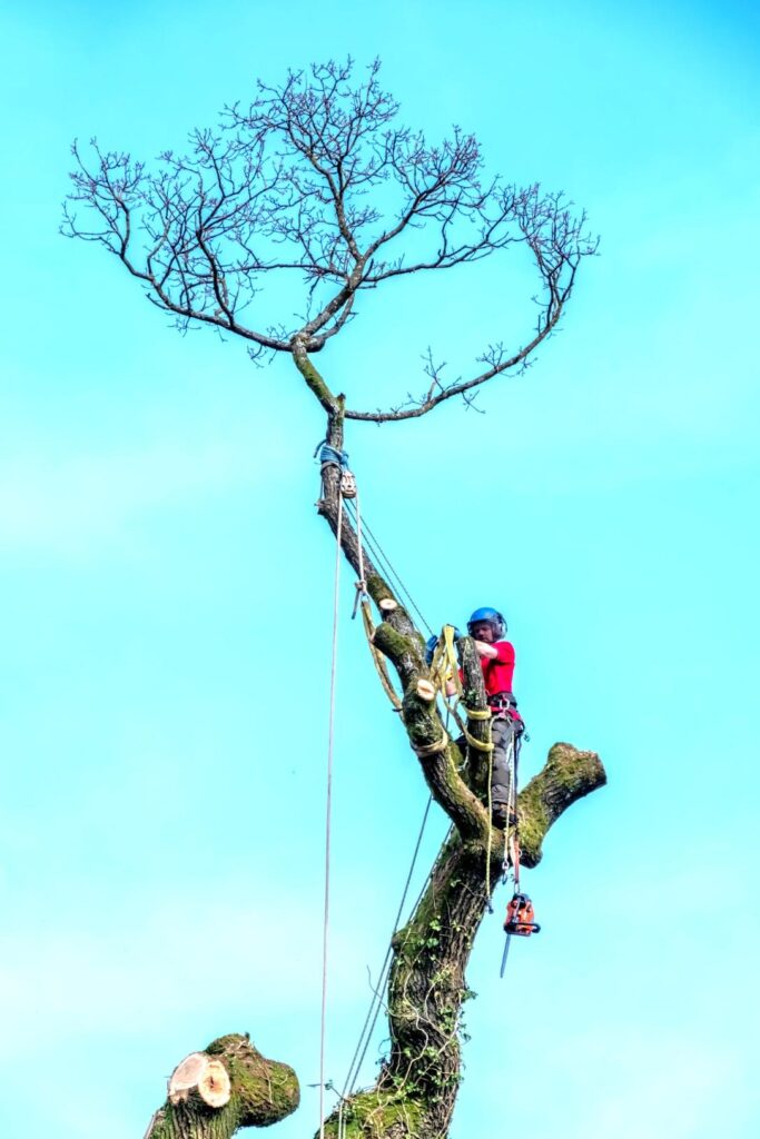 Wir arbeiten mit allen drei Methoden und empfehlen stets die effizienteste Methode, die sicher umsetzbar ist. Wenn möglich, fällen wir den Baum – dies ist die kostengünstigste Methode. Wenn das Fällen nicht möglich ist (z. B. aufgrund von Gebäuden in der Nähe), wählen wir je nach Baum und Arbeitsumgebung zwischen dem Einsatz eines Kranwagens, eines Hubarbeitsbühnenkrans und der Seilklettertechnik.
